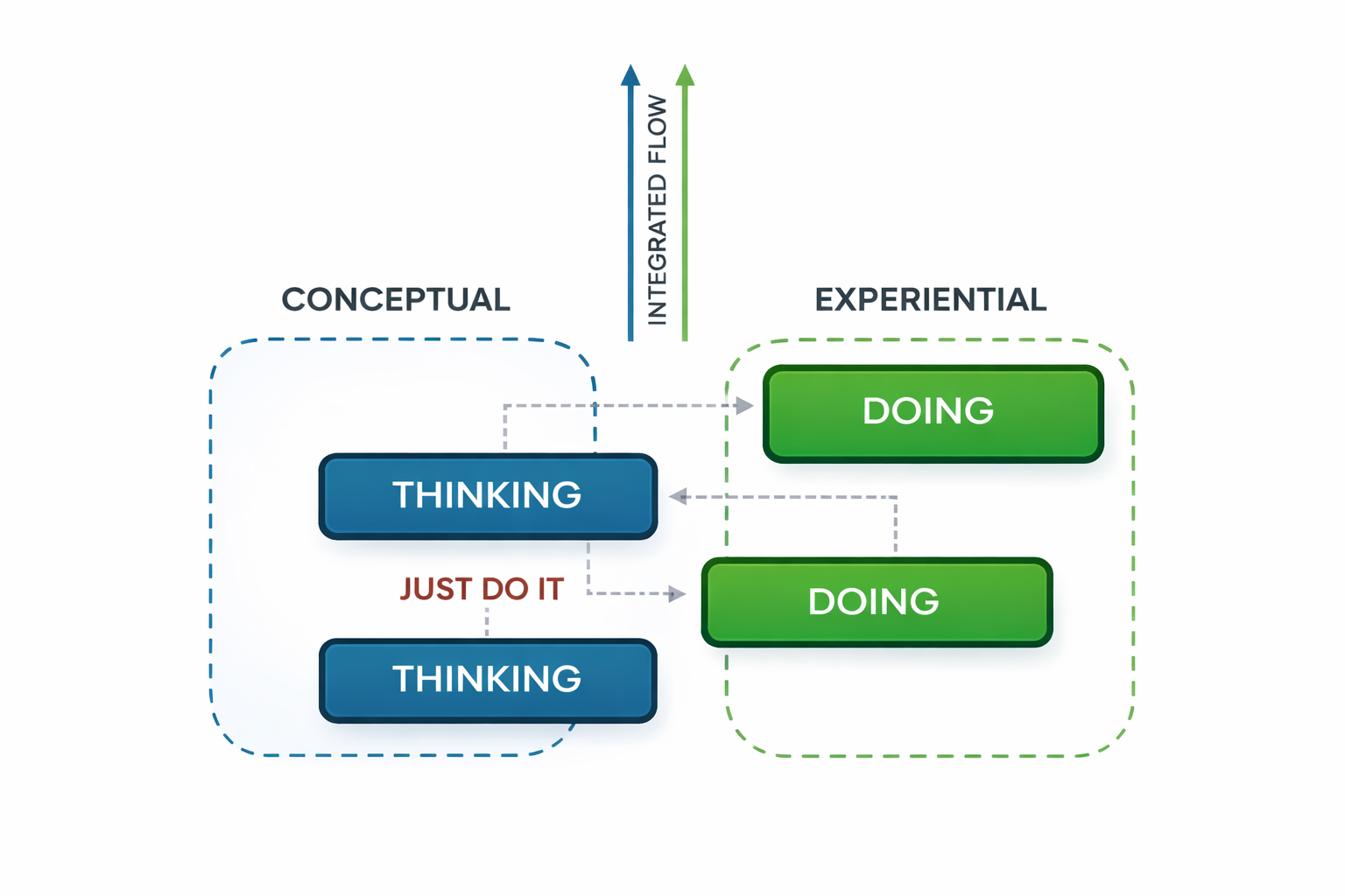 Those who do take that leap learn things they never could have learned from books or research alone. They start moving back and forth between thinking and doing. They refine their understanding, test it in the real world, learn from what happens, then refine again. Over time, thinking and doing become so intertwined that they stop noticing where one ends and the other begins.